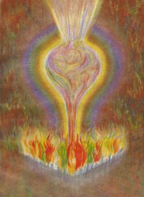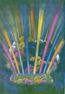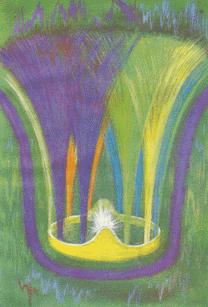 Первый куплет бросает музыкальные цветные массы в первоначальный набросок структуры и задаёт направление течения сил. Фигуру окружают сияющие цветные излучения и цветные массы, заполняя области между лепестками и под ними. Внутри этого облака более тёмных цветов ярко светится тройная фигура, вся усыпанная вспышками золотого.